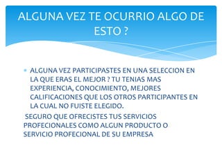 Este documento destaca la importancia de desarrollar una red de contactos para tener éxito en el ámbito profesional y personal. Explica que las personas con una amplia red de contactos tienen más probabilidades de encontrar un buen empleo, recibir ayuda para encontrar trabajo, y acceder a recursos como médicos y abogados calificados. También señala que en la actualidad la mayoría de las personas consiguen empleos a través de sus contactos personales, por lo que es fundamental aprovechar y expandir la propia red de contactos.