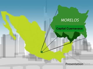 El estado de Morelos se localiza en el centro de México. Limita con el Distrito Federal, el estado de México, Guerrero y Puebla. Su capital es Cuernavaca. Morelos tiene una superficie de 4,879 km2 y una población de aproximadamente 2 millones de habitantes. Algunos de sus atractivos naturales son las lagunas de Zempoala, la barranca de Amanalco y varias cascadas. La gastronomía morelense incluye platillos como el clemole y el mole estilo Morelos. Personajes históricos de More