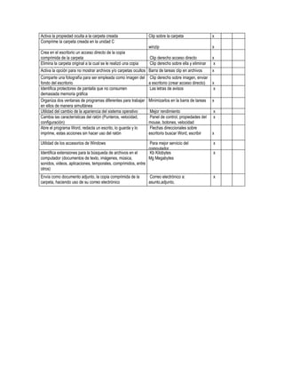 Este documento presenta varias situaciones de mal funcionamiento de un computador y sus posibles soluciones. Propone diagnosticar problemas como una pantalla negra, un mouse que no se mueve, un teclado que emite pitidos, y una impresora con errores. También incluye ejercicios para diagnosticar problemas avanzados del sistema operativo como organizar ventanas, cambiar la apariencia, y utilizar accesorios de Windows.