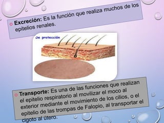Este documento describe la morfología y fisiología de los tejidos. Explica que la morfología estudia la composición y funciones biológicas de los tejidos humanos como células, órganos y sistemas. Los tejidos se organizan en diferentes niveles, desde el subatómico hasta el nivel de biósfera. También clasifica los tipos de epitelio como plano, cúbico, cilíndrico y de transición, y describe sus características y funciones.