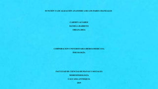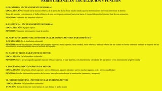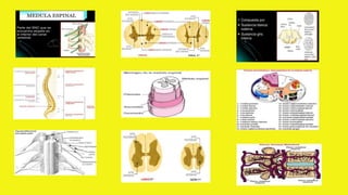 Este documento describe la anatomía y función de los pares craneales y la médula espinal. Explica que los 12 pares craneales transmiten información sensorial y motora entre el cerebro y diferentes partes de la cabeza y el cuello. También describe la estructura interna y externa de la médula espinal, incluyendo la sustancia gris, blanca y los tractos ascendentes y descendentes. Finalmente, resume los principales tipos de sensaciones transmitidas por la médula espinal como la propiocepción, exterocepción e interocepción