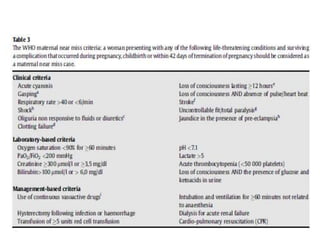 La mortalidad materna sigue siendo un problema grave, con aproximadamente 515,000 muertes de mujeres cada año debido a complicaciones del embarazo o parto, principalmente en países en desarrollo. La mayoría de estas muertes son prevenibles a través de un manejo clínico apropiado y acceso a atención médica de calidad.