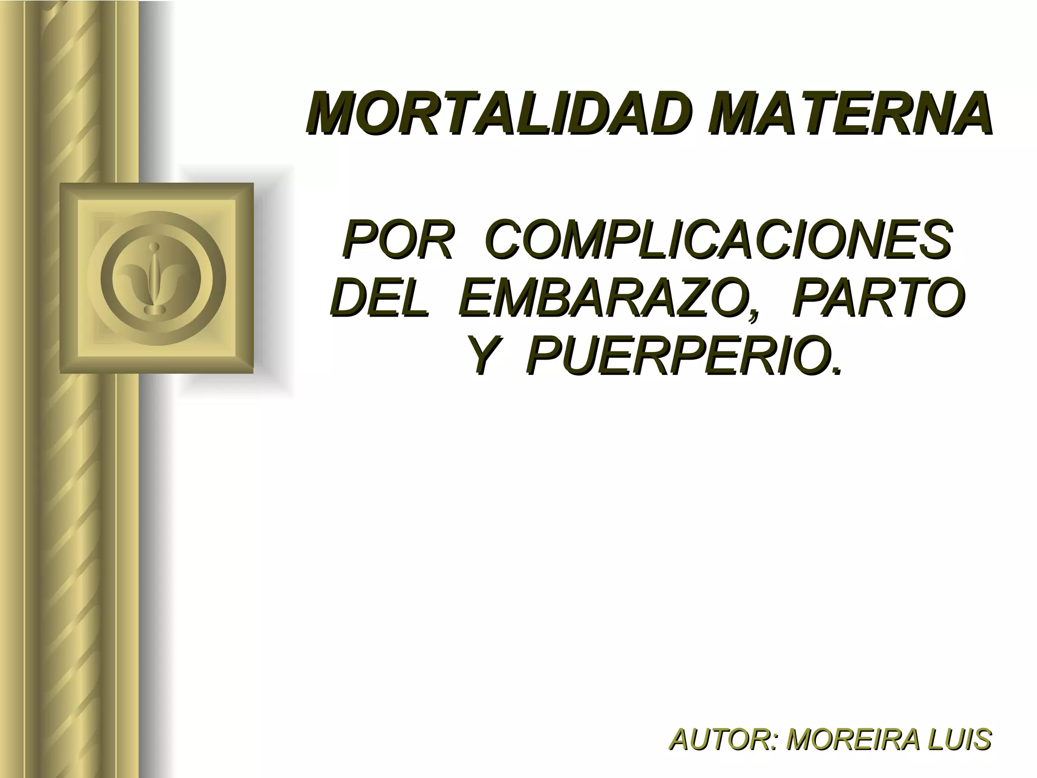 El documento examina la mortalidad materna en el complejo sanitario San Luis entre 1997 y 2005, identificando las causas más frecuentes de defunciones maternas y la situación actual. Se lleva a cabo un estudio descriptivo y cuantitativo que resalta el papel crucial de los obstetras en la reducción de esta mortalidad y la importancia de brindar información para la planificación de programas de salud. Se concluye que muchas muertes maternas son evitables y subraya la necesidad de un mejor control prenatal y seguimiento durante el embarazo.