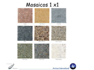 Los mosaicos disponibles incluyen mosaicos 1x1, 2x2, de Castellón, diamante, rectangulares y hexagonales en diferentes tamaños como 1x1 y 2x1.