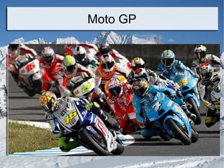 El documento habla sobre Moto GP y menciona a cuatro de los mejores pilotos: Stoner, Rossi, Pedrosa y Lorenzo.
