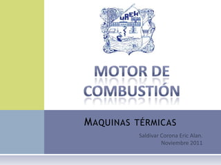 El documento describe los diferentes tipos de máquinas térmicas, incluyendo motores de combustión interna como el motor Otto, diesel, de dos tiempos y Wankel, así como máquinas de combustión externa como la máquina de vapor y las centrales térmicas. También explica los sistemas que componen un motor como la culata, lubricación, alimentación de combustible, refrigeración y arranque.