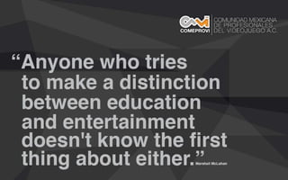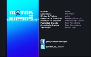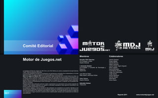 Este documento presenta un resumen de la industria del desarrollo de videojuegos en México en 2011. Señala que la industria está creciendo rápidamente pero que necesita fortalecerse a través de una mejor educación y vinculación entre escuelas, empresas y gobierno. También destaca la necesidad de promover la interdisciplinariedad y el aprendizaje basado en experiencias para formar a profesionales calificados capaces de trabajar a nivel internacional.
