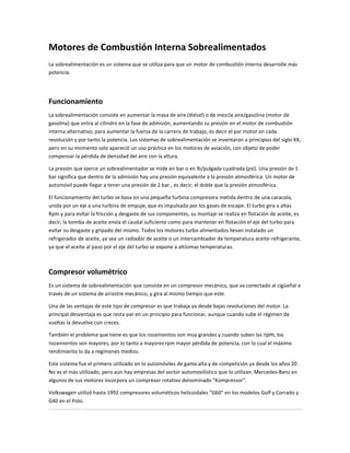 1. La sobrealimentación consiste en aumentar la masa de aire que entra al motor para aumentar su potencia.