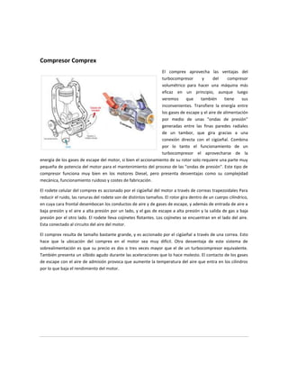 2. Existen varios sistemas como el turbo, compresor volumétrico y comprex, pero el más utilizado es el turbocompresor porque ocupa poco espacio y da más potencia de forma eficiente.