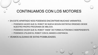 En esta sesión del curso, se exploran diversas formas de controlar un robot mBot, incluyendo programación mediante el software mBlock y el uso de un mando a distancia. Se enfatiza la importancia de los bloques de código, diferenciando entre aquellos específicos de la placa y los generales que pueden ser usados con conexión. Las actividades propuestas incluyen mover el robot en diferentes direcciones y programación para que realice movimientos autónomos.