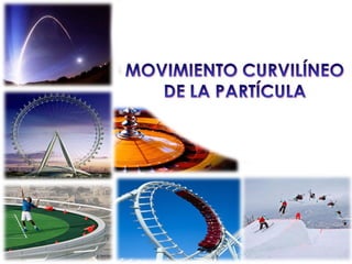 Este documento describe el movimiento curvilíneo de una partícula. Explica conceptos como velocidad, aceleración, trayectoria y magnitudes cinemáticas para movimientos curvilíneos, circulares y de proyectiles. También define ecuaciones para calcular distancias, tiempos y velocidades en estos tipos de movimiento.