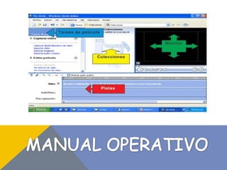 Este documento describe las funciones y herramientas de un programa de edición de video. Explica cómo importar imágenes y audio, colocarlos en las pistas de video y audio, agregar títulos, efectos y transiciones, y guardar el proyecto finalizado. Se dividen las zonas de trabajo y se enumeran los pasos para comenzar a editar el video agregando imágenes, música y efectos de manera secuencial.