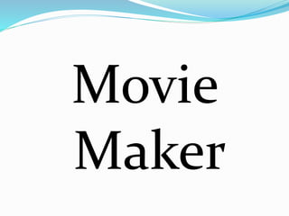 Movie Maker es un software de edición de video gratuito desarrollado por Microsoft. Permite importar imágenes, video y audio, agregar transiciones, efectos y títulos, y exportar el video final en formato WMV. Aunque está dirigido al uso doméstico, también puede usarse para crear pequeñas películas educativas. Tiene ventajas como ampliar el aprendizaje más allá del aula, pero también limitaciones como solo guardar archivos en formato WMV.