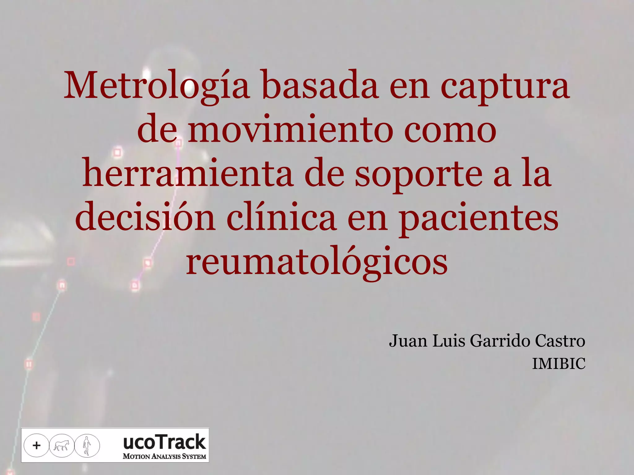 Este documento describe el uso de la metrología basada en captura de movimiento para evaluar a pacientes con espondilitis anquilosante. Explica cómo el sistema UCOTrack utiliza cámaras para capturar el movimiento tridimensional mediante marcas reflectivas y produce mediciones cinemáticas. Se presentan dos casos clínicos que muestran cómo el índice UCOASMI desarrollado puede detectar cambios en la movilidad espinal antes y después del tratamiento. El documento concluye que este enfoque proporciona una evaluación clínica