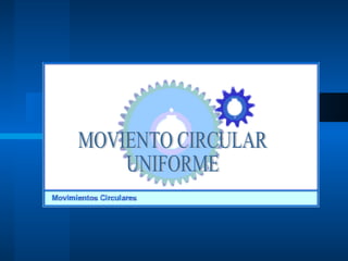 Este documento trata sobre el movimiento circular uniforme. Explica que es un movimiento en el que un objeto se mueve alrededor de un punto central siguiendo una circunferencia a velocidad angular constante. Aunque la velocidad cambia constantemente en magnitud y dirección, la velocidad angular permanece constante, por lo que existe una aceleración. El documento también describe cómo se puede expresar la velocidad de un movimiento circular uniforme en revoluciones por minuto, radianes por segundo u otras unidades.