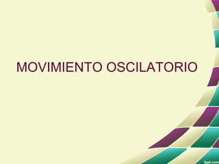 Este documento trata sobre el movimiento oscilatorio y el movimiento armónico simple. Explica conceptos como amplitud, periodo, frecuencia, posición de equilibrio, ley de Hooke, representación matemática, energía, velocidad y aceleración en el movimiento armónico simple. También compara el movimiento armónico simple con otros tipos de movimiento y analiza el pendulo simple, pendulo físico, oscilaciones amortiguadas y oscilaciones forzadas.