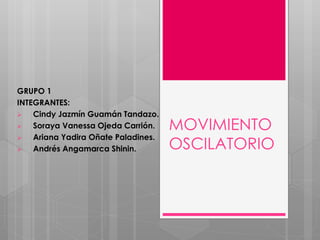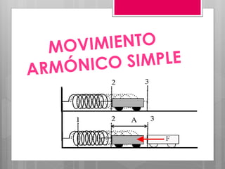 Este documento describe el movimiento oscilatorio armónico simple y sus características fundamentales. Explica que un movimiento oscilatorio ocurre cuando una partícula se mueve periódicamente respecto a una posición de equilibrio debido a una fuerza recuperadora proporcional a su desplazamiento. Define conceptos clave como periodo, frecuencia, amplitud y elongación. También describe oscilaciones amortiguadas y forzadas, y fenómenos como resonancia.