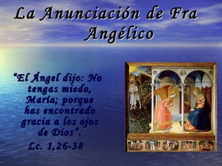 El documento describe una serie de pinturas religiosas expuestas en el Museo del Prado en Madrid, que ilustran escenas de la vida de Jesús desde la Anunciación hasta la Resurrección, citando pasajes bíblicos relacionados con cada escena. Las pinturas incluyen obras maestras de artistas renacentistas como Fra Angelico, Rafael, Hans Memling, Juan Bautista Maino y Pedro Pablo Rubens.