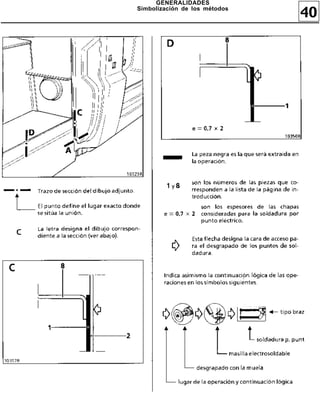 Este documento describe las diferentes partes estructurales de un vehículo comercial, incluyendo la estructura inferior (como el umbral de enmarcado y el piso trasero de la cabina), la estructura superior lateral (como el panel trasero de la cabina y la unidad lateral de la cabina) y la estructura superior trasera (como el tabique de la cabina). También menciona los altos de caja y el techo del vehículo. El documento proporciona detalles sobre cada parte identificada a través de imágenes y desc