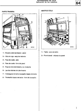 El documento habla brevemente sobre la estanquidad de caja y la aplicación de másticos para productos.