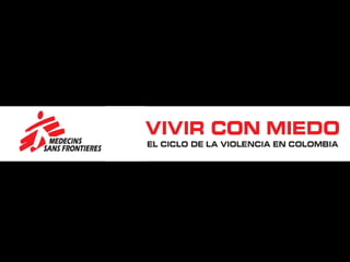 Médicos Sin Fronteras brinda asistencia médica humanitaria independiente a poblaciones vulnerables afectadas por conflictos armados y desastres naturales sin discriminación. Colombia ha sufrido 50 años de conflicto armado que ha desplazado a 3.7 millones de personas y generado altos niveles de violencia que se han convertido en la principal causa de muerte, especialmente entre mujeres jóvenes. El conflicto ha tenido graves consecuencias en la salud mental de la población civil con prevalencias de hasta el 27.6% de trastorn