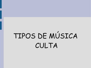 Este documento describe varios géneros musicales cultos como el canto gregoriano, la zarzuela, el réquiem, la ópera, la sonata, el nocturno, el vals, la marcha y el concierto. Brevemente explica el origen y características de cada uno.