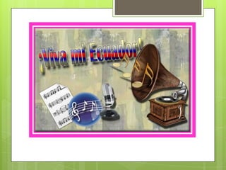 Este documento presenta información biográfica sobre cinco importantes compositores ecuatorianos de música popular: Carlos Aurelio Rubira Infante, Carlota Jaramillo, Julio Jaramillo, Enrique "El Pollo" Ibáñez y los géneros musicales que cada uno compuso, incluyendo pasillos, pasacalles y boleros. Se destaca la gran contribución de estos artistas a la música popular ecuatoriana.