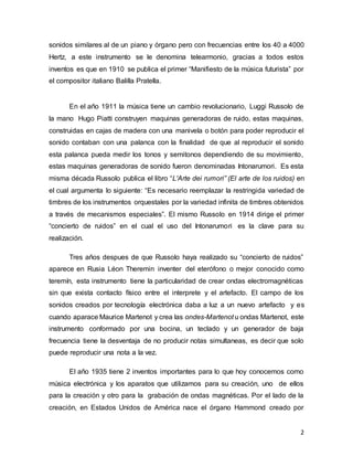 La música electrónica se originó con el uso de la tecnología electrónica para crear y manipular sonidos. A lo largo de los años, varios inventos revolucionaron la creación y grabación de sonidos electrónicos, dando origen a géneros como la música concreta y la música electrónica. Hoy en día, la música electrónica continúa evolucionando con nuevos sonidos, efectos, software y hardware.