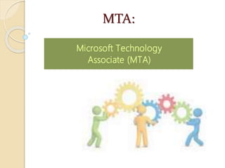 El documento describe el programa de certificación Microsoft Technology Associate (MTA). MTA ofrece certificaciones de nivel de entrada para validar los conocimientos básicos necesarios para iniciar una carrera en tecnología. El programa incluye 12 certificaciones agrupadas en tres categorías: desarrollador, profesional de TI y base de datos. Las certificaciones MTA brindan un valor agregado a los estudiantes al comienzo de su carrera y prepararlos para certificaciones profesionales de Microsoft.