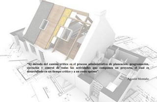 El método del camino crítico (CPM) es una herramienta de gestión que permite la planificación, programación, ejecución y control eficiente de proyectos, buscando optimizar costos y tiempos. A través de sus características y aplicaciones, el CPM facilita la identificación de tareas críticas y la gestión de recursos para asegurar el cumplimiento de los objetivos proyectados. Este documento también aborda la diferencia y similitud con el método PERT, y detalla el enfoque práctico del uso de estos métodos en la construcción.