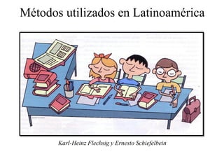 Este documento describe varios métodos didácticos utilizados en Latinoamérica, incluyendo la enseñanza frontal tradicional, la asignación de tareas y los pequeños grupos de discusión. Para cada método, se describen los principios didácticos, las fases de aplicación y los roles del profesor y el estudiante. El documento proporciona una visión general de diferentes estrategias de enseñanza-aprendizaje que se utilizan en la región.
