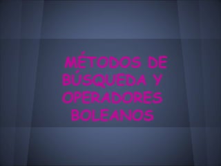Este documento describe diferentes métodos y herramientas para realizar búsquedas de información en línea, incluyendo operadores booleanos, índices temáticos, motores de búsqueda, metabuscadores, buscadores avanzados, traductores automáticos y sus tipos. Explica que cada uno tiene un propósito específico para encontrar datos de manera más precisa.