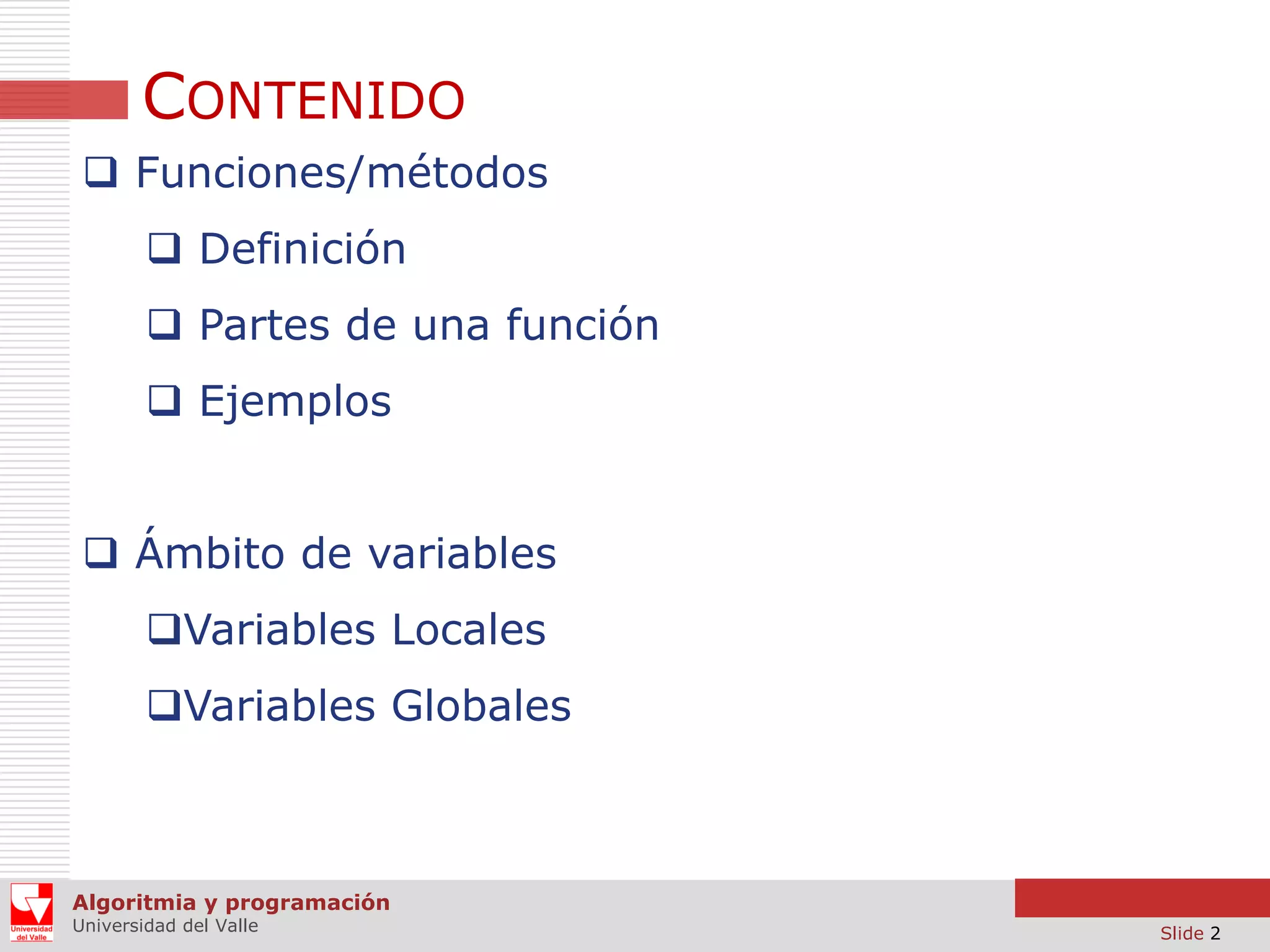 Este documento describe las funciones o métodos en programación. Explica que una función es un sub-algoritmo que forma parte de un algoritmo principal y se encarga de resolver una tarea específica. Luego detalla las partes de una función como el nombre, parámetros, tipo de retorno, cuerpo y más. Finalmente muestra ejemplos de cómo definir funciones en Java y llamarlas desde el programa principal.