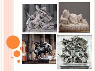 Este documento describe el movimiento romántico en las artes, incluyendo su origen como reacción contra la Ilustración, sus características en literatura, música y pintura. En literatura, destaca autores románticos de Francia, Inglaterra e Italia. En música, el piano se convierte en el instrumento principal y surgen los virtuosos. En pintura, artistas como Goya y Delacroix se alejan de las reglas neoclásicas y usan colores y composiciones más expresivas.