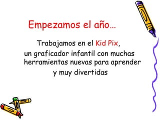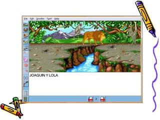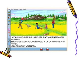 Los estudiantes trabajaron con diversos programas informáticos educativos como Kid Pix y StoryBook para aprender y practicar habilidades como copiar palabras y figuras, unir puntos con líneas, escribir y pintar dibujos sobre temas como el medio ambiente y la bandera argentina, y diseñar cuentos colocando animales en diferentes escenarios como el Polo Norte, la playa y la selva. También aprendieron sobre la vestimenta y costumbres de los gauchos argentinos para una muestra de ciencias.