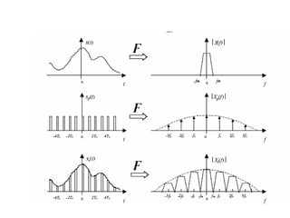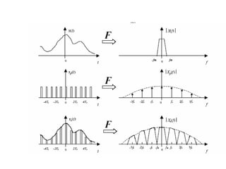 Este documento trata sobre la conversión de señales analógicas a digitales. Explica las tres etapas principales de este proceso: muestreo, cuantización y codificación. El muestreo consiste en tomar muestras de la señal analógica en intervalos regulares de tiempo. La cuantización limita los valores de amplitud de la señal muestreada a un conjunto finito de valores. Finalmente, la codificación representa los valores cuantizados mediante palabras digitales.