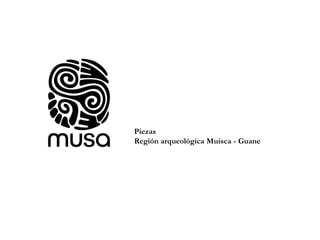 El documento describe piezas arqueológicas de la región muisca, incluyendo copas ceremoniales y cuencos con decoraciones geométricas, antropomorfas y zoomorfas. Se menciona la múcura muisca, un objeto significativo que incluye figuras antropomorfas. También se proporciona información de contacto del Museo Arqueológico en Bogotá, D.C.