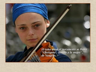 Este documento es un pequeño homenaje a las mujeres de todas las edades y nacionalidades, especialmente a aquellas que siguen amando, soñando y luchando por un mundo mejor a pesar de las dificultades. También menciona que la canción "Glorianna - Himno a la mujer" de Vangelis captura adecuadamente este homenaje. Finalmente, incluye un poema que describe cómo Dios creó a la mujer con características físicas y emocionales únicas que le permiten dar vida y soñar.