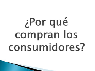 Este documento trata sobre el comportamiento del consumidor y factores que influyen en las decisiones de compra. Explica que el consumidor es afectado por factores internos como la personalidad y motivaciones, y externos como la cultura y grupo social. También describe teorías como la económica que ve al consumidor como racional, y la sociológica que enfatiza las influencias sociales. El documento provee una visión general de conceptos clave sobre el consumidor.