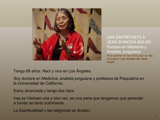 La entrevista describe las cualidades de las "brujas sabias" según Jean Shinoda Bolen, una psiquiatra y analista junguiana de 68 años. Bolen explica que las brujas sabias son personas, generalmente mujeres mayores, que son atrevidas, confían en sus intuiciones, ríen y tienen pulgares verdes. También defiende la formación de círculos de mujeres para conectarse espiritualmente y promover el cambio positivo en el mundo.