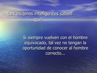 El documento ofrece consejos y reflexiones para las mujeres sobre cómo comportarse en las relaciones amorosas, cómo proyectar seguridad y confianza, y sobre la importancia de conocerse a sí mismas para tomar buenas decisiones. También enfatiza la necesidad de que las mujeres compartan esta información entre ellas para apoyarse mutuamente.