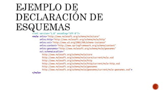 Los Cloud Connectors de Mule pueden procesar mensajes y comunicarse con sistemas remotos como parte de un flujo de Mule. Para usarlos en un proyecto de Mule, primero deben descargarse e instalarse, y luego incluirse en el esquema del proyecto junto con las declaraciones de espacio de nombres. Esto permite definir elementos de configuración para establecer propiedades globales como credenciales que se aplicarán a todas las operaciones del conector.