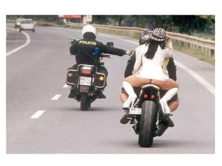 Una foto muestra a una chica en una moto sin casco y un policía detrás de ella. Al observar la foto de nuevo, se da cuenta de que la chica no lleva casco, lo que probablemente llevaría al policía a detenerla.