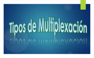El documento explica diferentes tipos de multiplexación utilizados para transmitir múltiples señales a través de un solo medio. Describe la multiplexación por división de tiempo (TDM), la cual asigna intervalos de tiempo a cada canal dentro de una trama. También describe la multiplexación por división de frecuencia (FDM), la cual transmite canales en diferentes frecuencias, y la multiplexación por división de longitud de onda (WDM), la cual usa diferentes colores de luz. Finalmente, describe la multiplexación por división de código (CDM), la