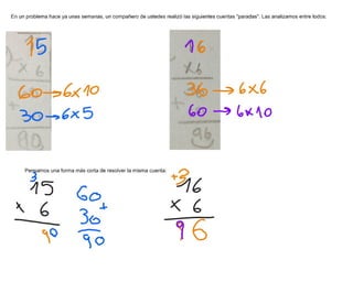 En 4° del Colegio Las Cumbres, analizamos cuentas para resolver multiplicaciones por dos cifras. 2016 (Imagenes y actividades tomadas del libro "Los matemáticos de 4°", de Santillana)