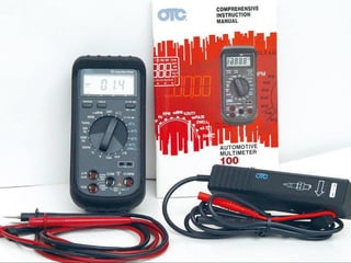 El documento describe las funciones y uso de un multímetro o multitester, un instrumento que mide corriente eléctrica, tensión, resistencia y otras propiedades eléctricas. Existen dos tipos, análogos y digitales. Permite realizar mediciones de voltaje continuo y alterno, corriente, resistencia, diodos, transistores y más. Se debe seleccionar la escala correcta y conectarlo apropiadamente para cada tipo de medición siguiendo procedimientos de seguridad para evitar daños al usuario o el instrumento.