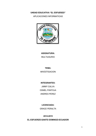 Este documento presenta una investigación sobre el internet. Explica conceptos clave como cómo funciona internet, los modos de acceso, características, protocolos TCP/IP, direcciones IP, y estructura de clientes y servidores. El objetivo es dar a conocer los riesgos y beneficios del internet para un uso seguro.