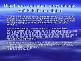 La Cámara de Diputados aprobó temporalmente suspender la creación de nuevas universidades en el país y una ley que dará validez legal a la firma digital y documentos electrónicos. También aprobaron rediseñar el sitio web de ABC para ofrecer un espacio de lectura más cómodo y lanzar un portal de noticias optimizado para teléfonos móviles.