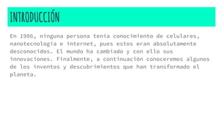 Este documento resume algunas de las principales innovaciones tecnológicas de los últimos 25 años, incluyendo el LED, las cámaras digitales, la realidad virtual en los videojuegos, Photoshop, las pantallas táctiles, los DVD, el Wi-Fi, Google, y las redes sociales como Facebook y Twitter.