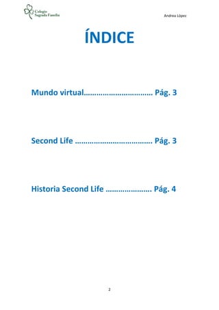 Según el documento, Second Life es un mundo virtual persistente disponible las 24 horas donde los usuarios pueden interactuar a través de avatares personalizables y comerciar bienes virtuales usando Linden Dólares. Fue creado en 1999 por Philip Rosedale, quien tuvo la visión de permitir a los usuarios inmersión en un mundo virtual a través de su compañía Linden Lab, originalmente intentando desarrollar hardware para esto. Linden Lab evolucionó su aplicación primero llamada Linden World a lo que hoy conocemos como Second Life.